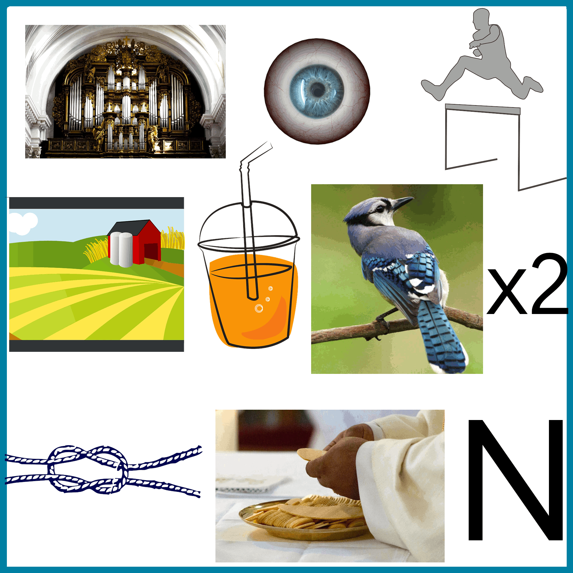 (Orgue – Oeil – Haie – Pré – Jus – Geai – Geai – Hostie – N)