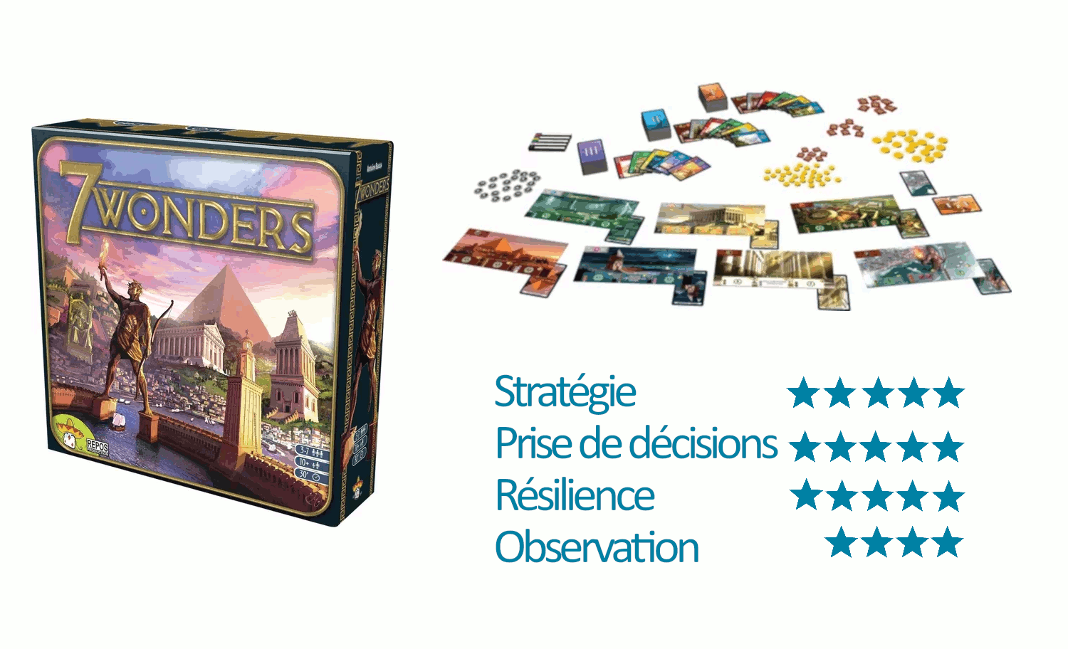 J’expliquais dans un premier article les vertus pédagogiques du jeu. Règles du vivre ensemble, persévérance, résilience, les vertus du jeu sont nombreuses. Et s’il existe un socle de vertus commun à tous les jeux, il y a aussi des qualités spécifiques à certains titres. J’aimerais ici passer au crible les compétences que mettent en jeu uneLire la suite « 7 wonders, crash test pédago »