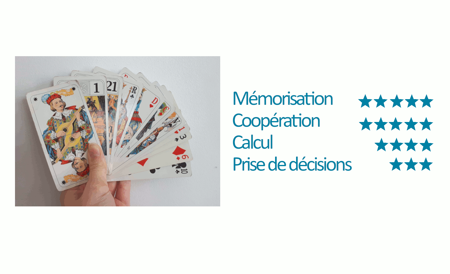 Qui n’a jamais joué au Tarot ? Un jeu passionnant, qui peut paraître complexe au début du fait du nombre de cartes, mais qui se révèle rapidement addictif et plein de surprises. Encore un jeu de société aux multiples vertus auquel un enfant habitué aux cartes, peut facilement commencer dès 7 ans, avec un peuLire la suite « Le Tarot, un classique aux vertus insoupçonnées »